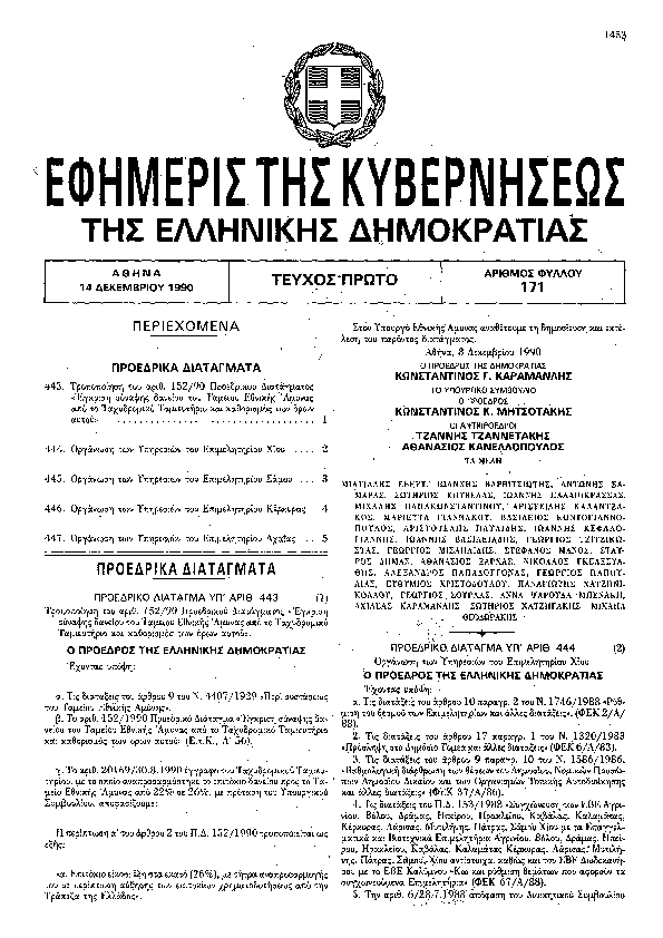 ΤΡΟΠΟΠΟΙΗΣΗ ΤΟΥ ΑΡΙΘ. 152/90 ΠΡΟΕΔΡΙΚΟΥ ΔΙΑΤΑΓΜΑΤΟΣ «ΕΓΚΡΙΣΗ ΣΥΝΑΨΗΣ ΔΑΝΕΙΟΥ ΤΟΥ ΤΑΜΕΙΟΥ ΕΘΝΙΚΗΣ ΑΜΥΝΑΣ ΑΠΟ ΤΟ ΤΑΧΥΔΡΟΜΙΚΟ ΤΑΜΙΕΥΤΗΡΙΟ ΚΑΙ ΚΑΘΟΡΙΣΜΟΣ ΤΩΝ ΟΡΩΝ ΑΥΤΟΥ».