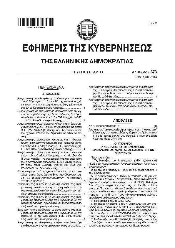 Αναζήτηση στα ΦΕΚ για:  'Εγκριση δαπάνης για τις