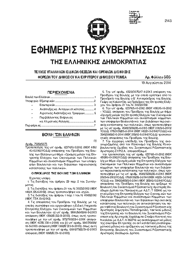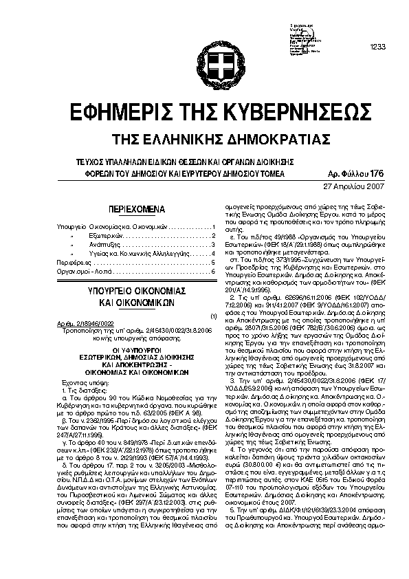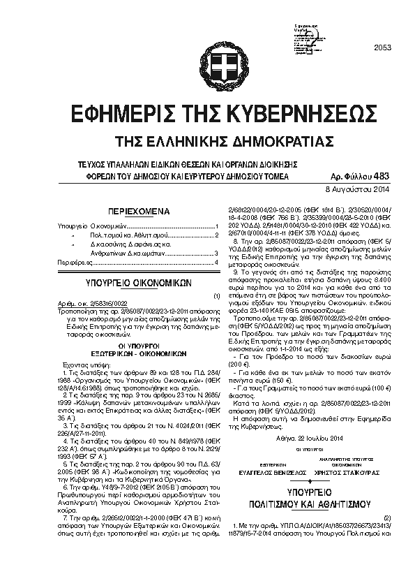 Αναζήτηση στα ΦΕΚ για:  'Εγκριση δαπάνης για τις