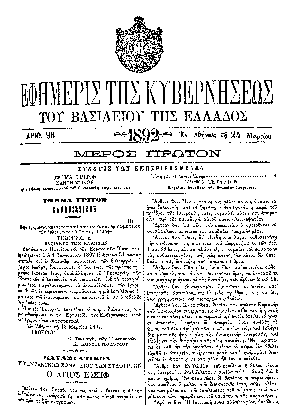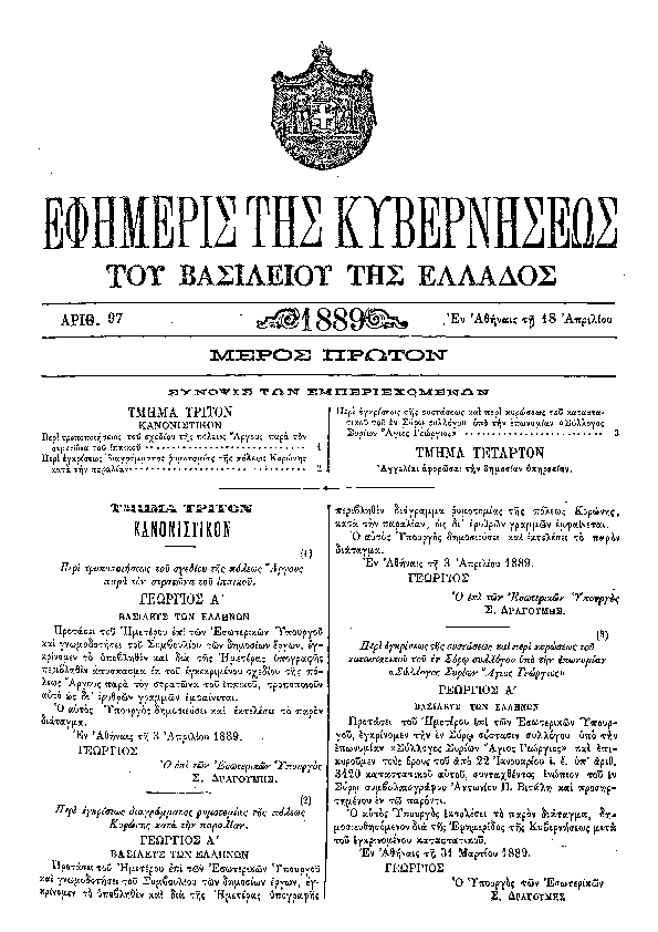 10. ΦΕΚ 96/A, 1889 http://www.et.gr/