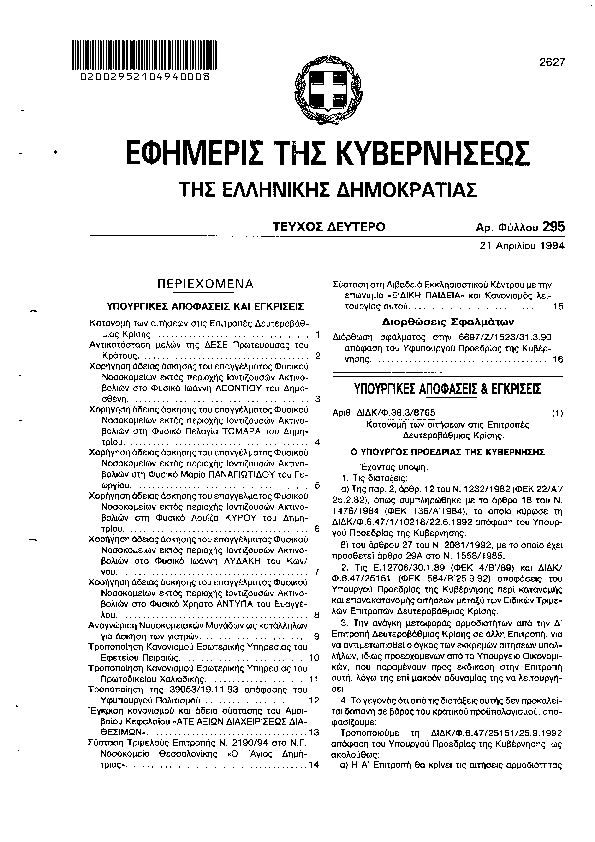 Αναζήτηση στα ΦΕΚ για:  «ΑΓΙΟΣ