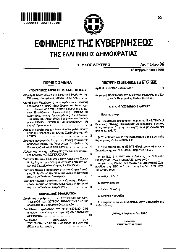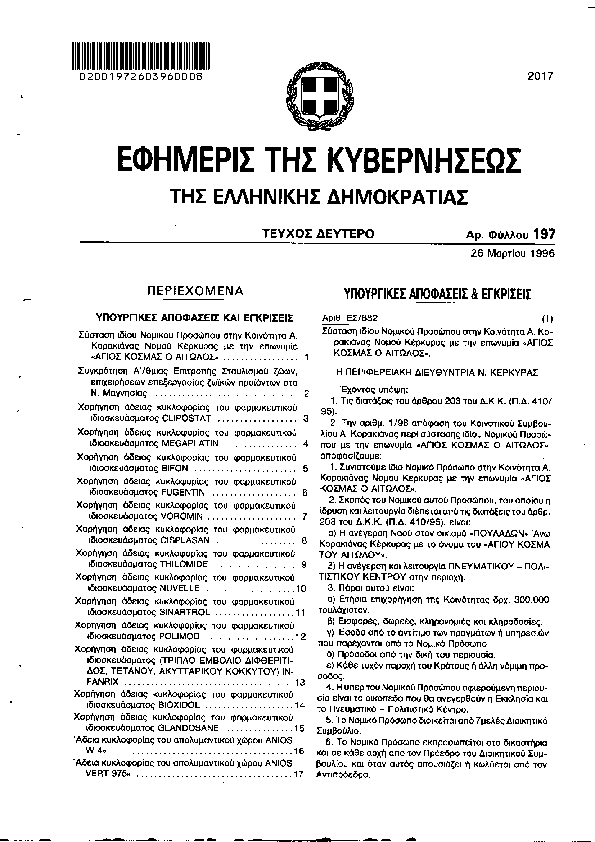 Αναζήτηση στα ΦΕΚ για:  «ΑΓΙΟΣ