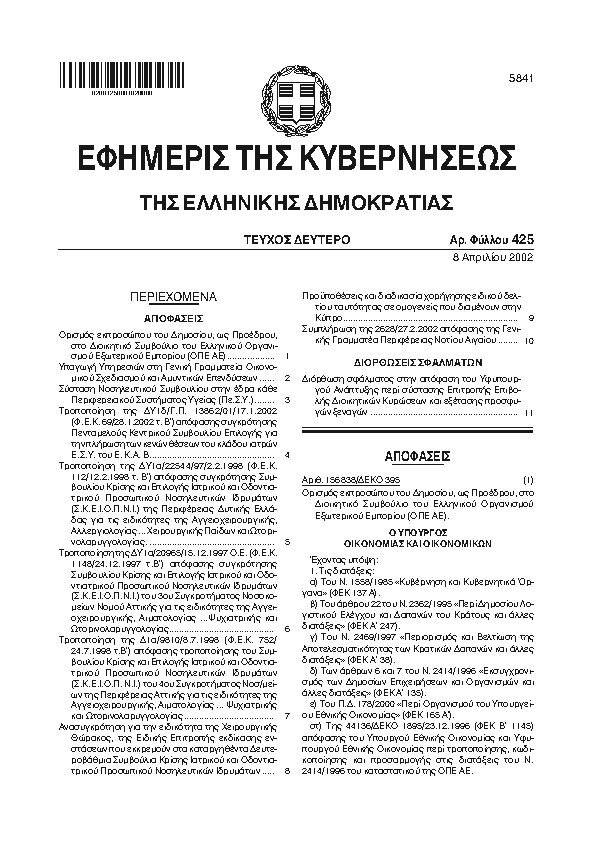 Αναζήτηση στα ΦΕΚ για:  «ΑΓΙΟΣ