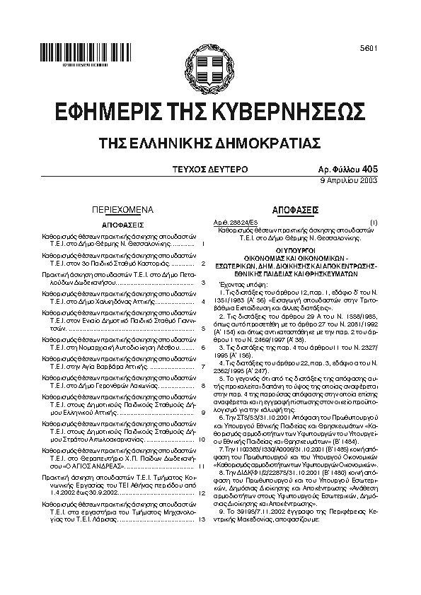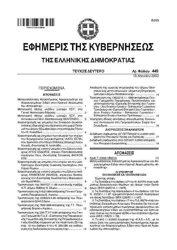 Αναζήτηση στα ΦΕΚ για:  «ΑΓΙΟΣ
