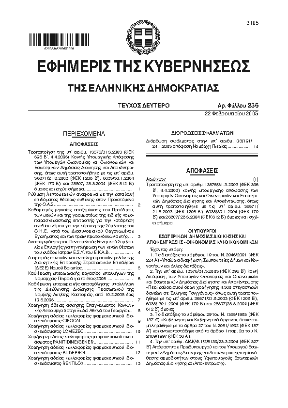 Αναζήτηση στα ΦΕΚ για:  «ΑΓΙΟΣ