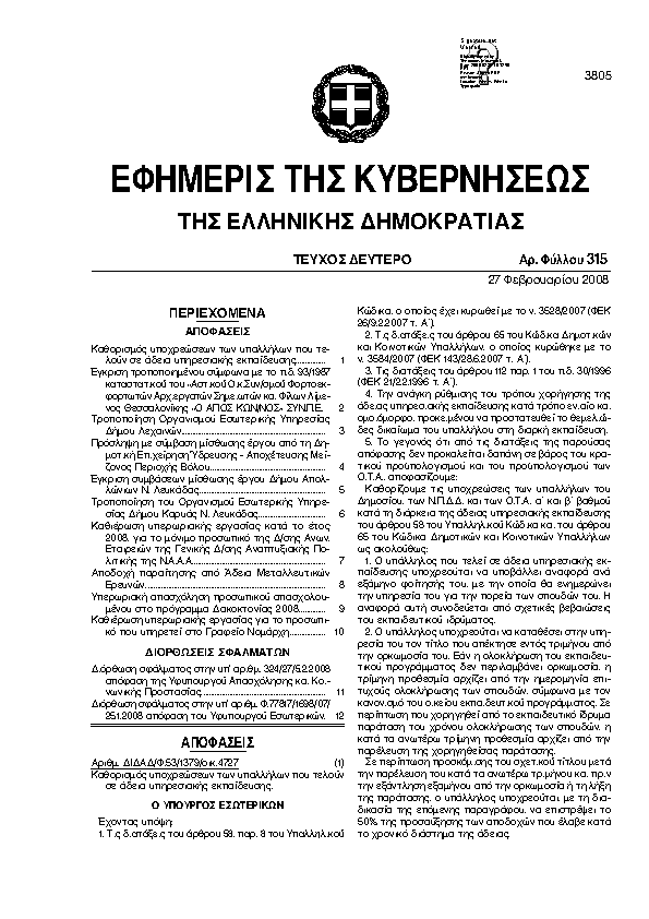 Αναζήτηση στα ΦΕΚ για:  «ΑΓΙΟΣ