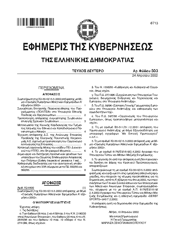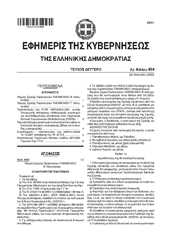 Αναζήτηση στα ΦΕΚ για:  Αθλητική Επιτροπή