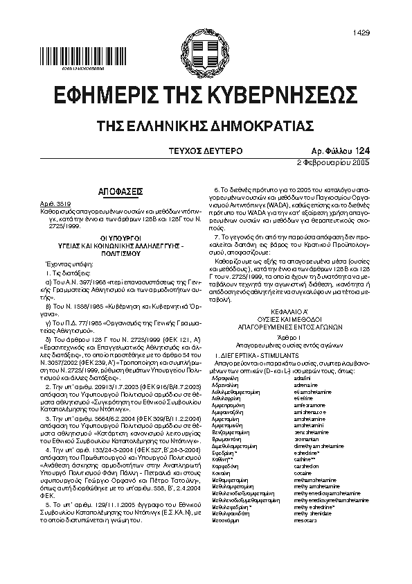 Αναζήτηση στα ΦΕΚ για:  Αθλητική Επιτροπή