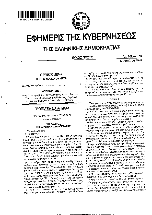 2. ΦΕΚ 78/A, 1998 http://www.et.gr/ Προεδρικό Διάταγμα