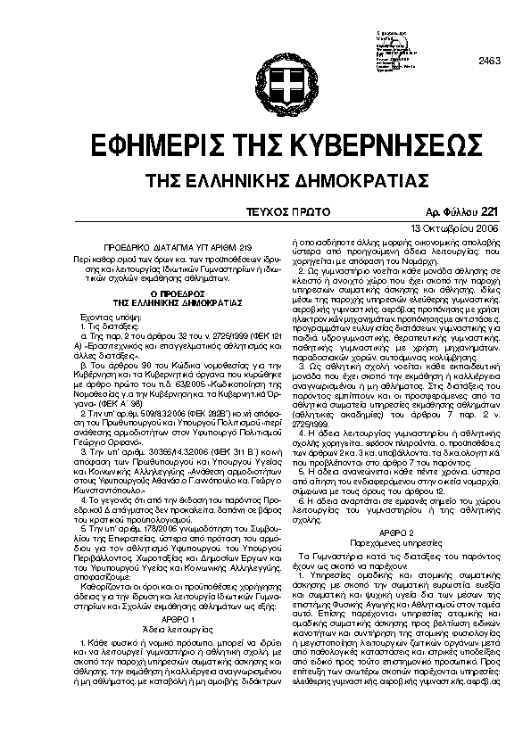 3. ΦΕΚ 221/A, 2006 http://www.et.gr/