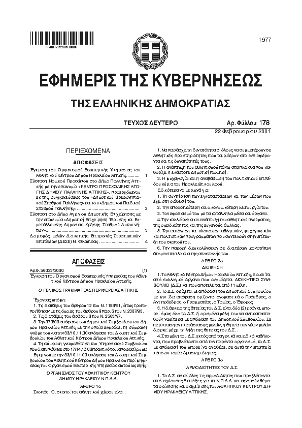 Αναζήτηση στα ΦΕΚ για:  Αθλητική