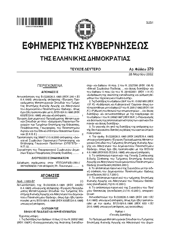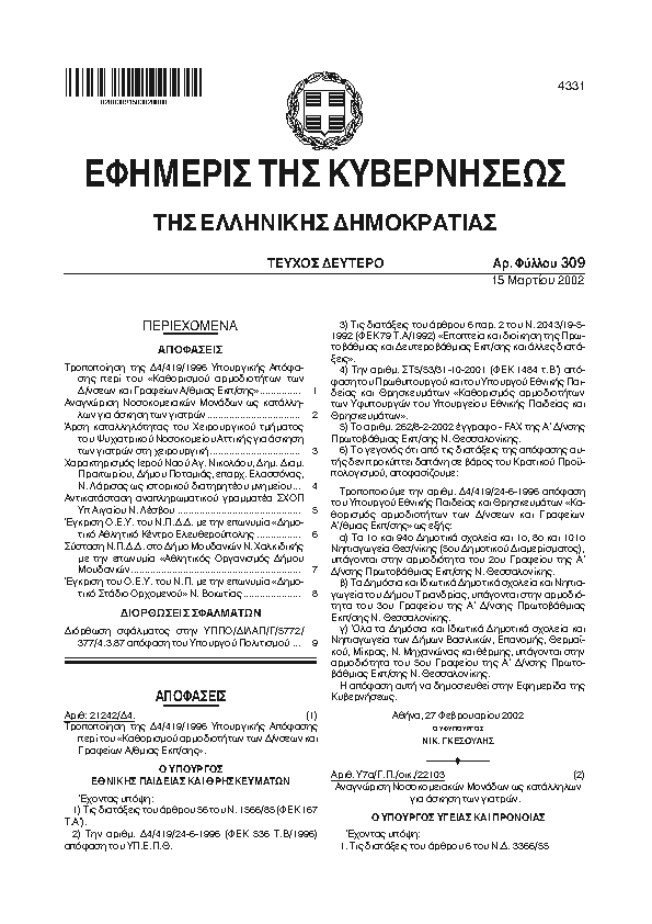 Αναζήτηση στα ΦΕΚ για:  Αθλητική