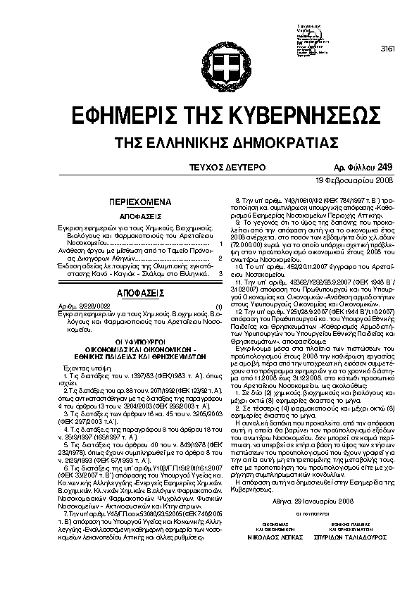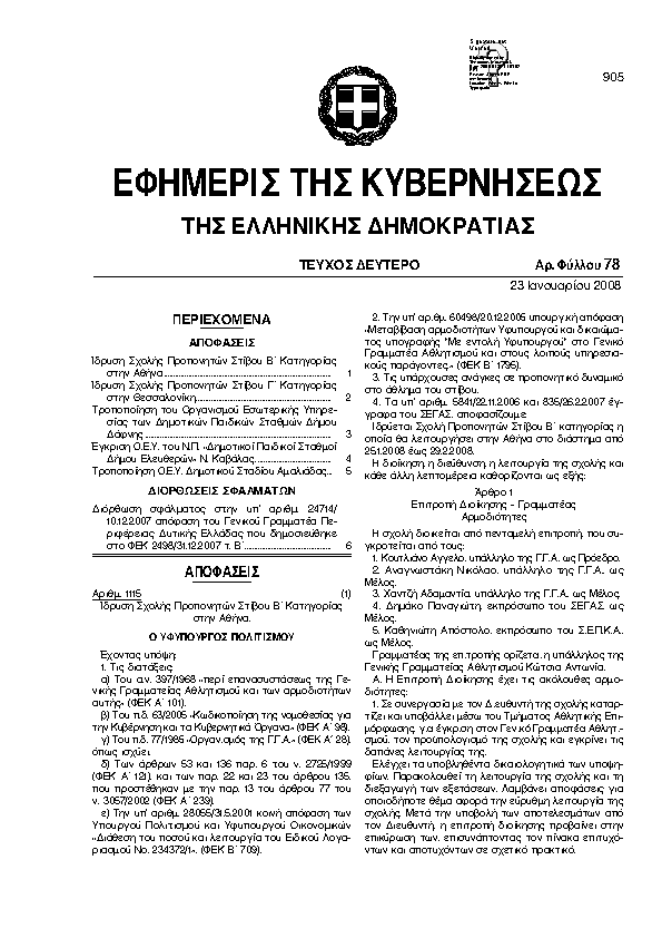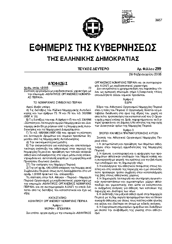 Αναζήτηση στα ΦΕΚ για:  Αθλητική