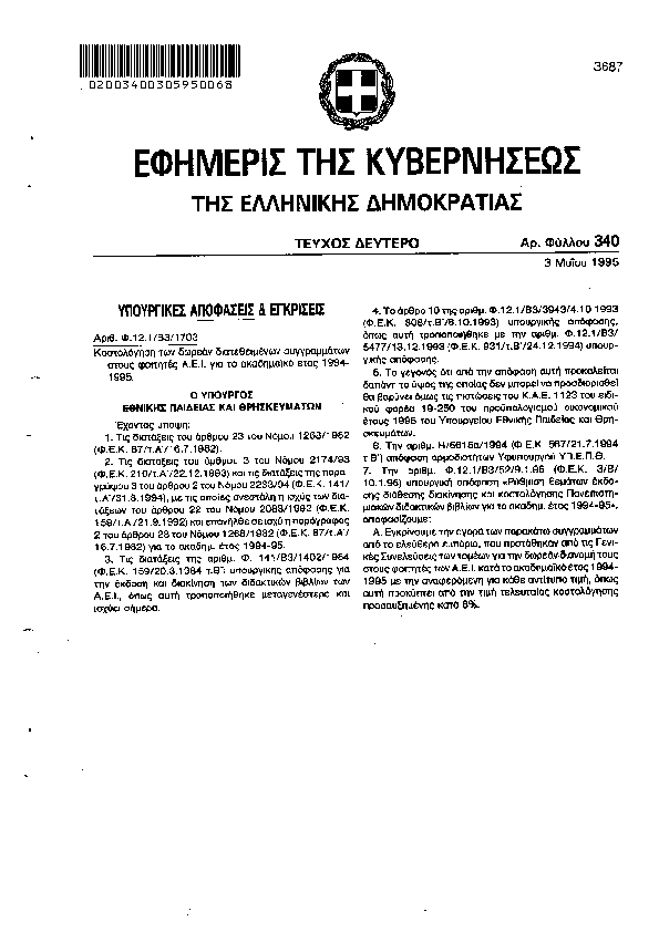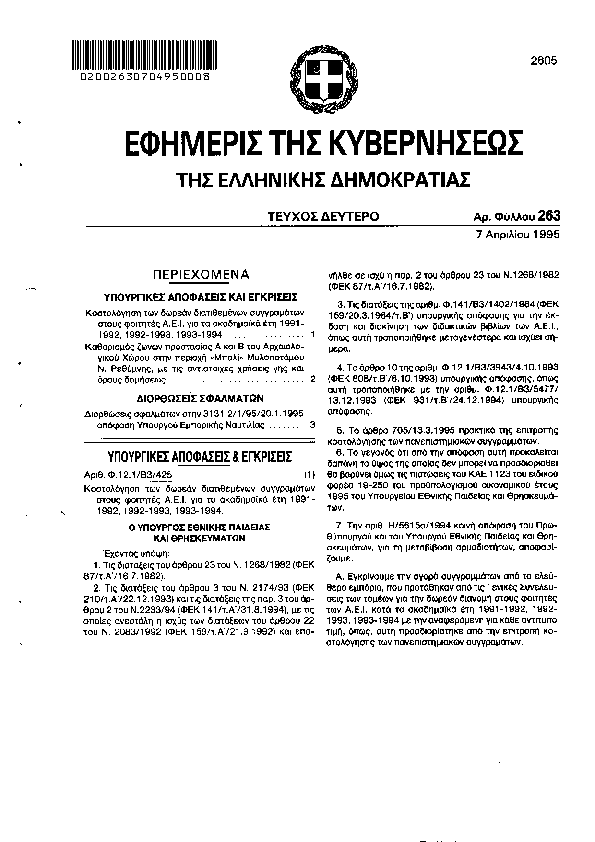 Αναζήτηση στα ΦΕΚ για:  Αθλητική