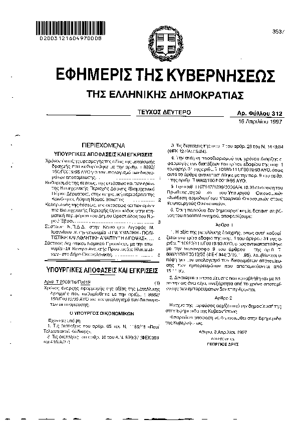 Αναζήτηση στα ΦΕΚ για:  Αθλητική