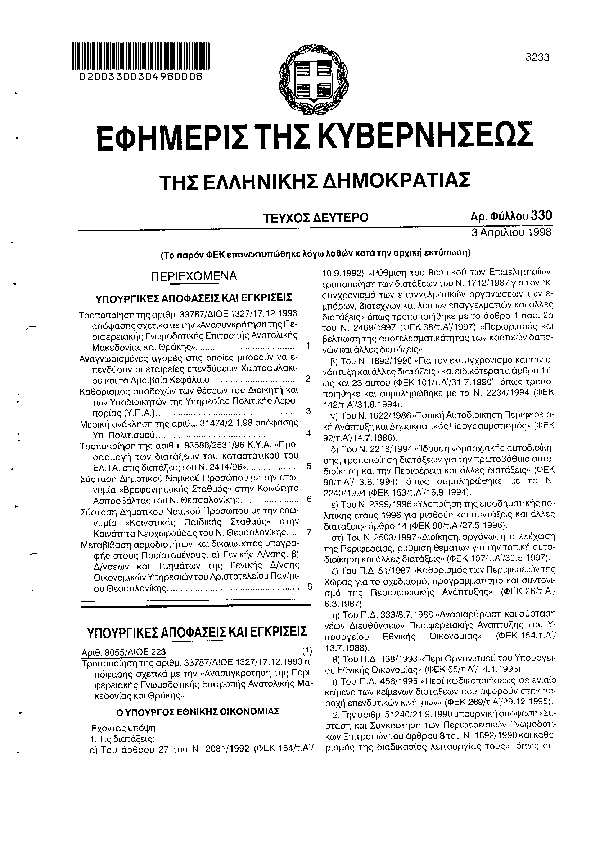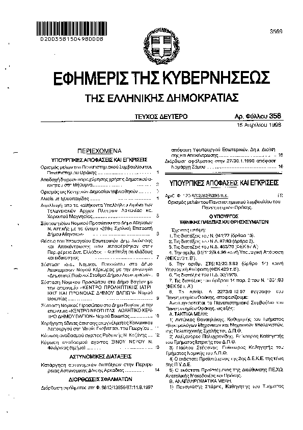 Αναζήτηση στα ΦΕΚ για:  Αθλητική