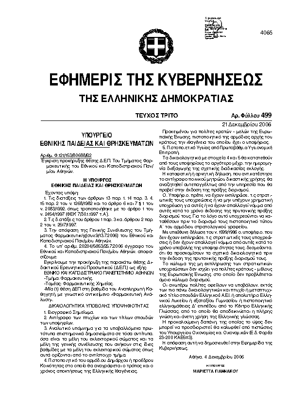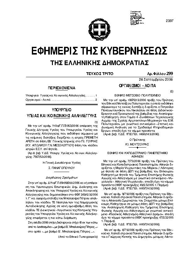 Αναζήτηση στα ΦΕΚ για:  Αθλητική