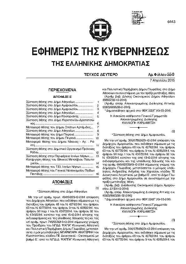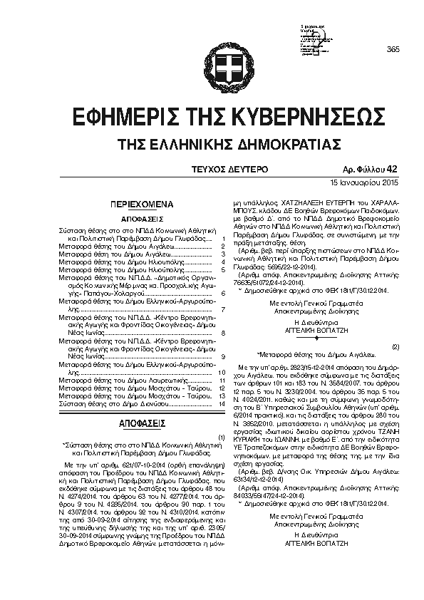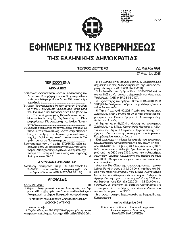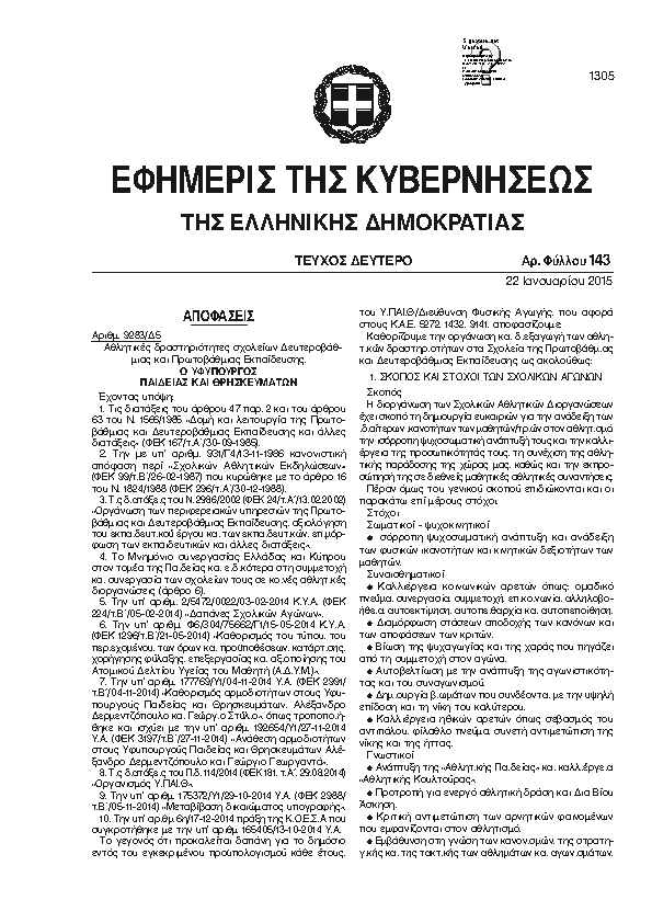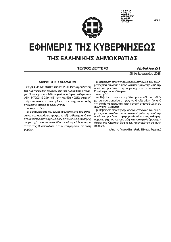 Αναζήτηση στα ΦΕΚ για:  Αθλητική