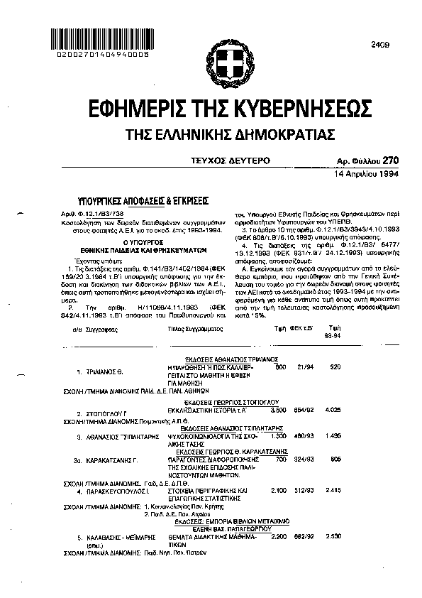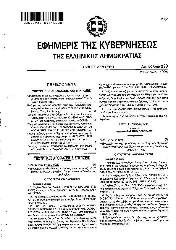 Αναζήτηση στα ΦΕΚ για:  Βαρναβα