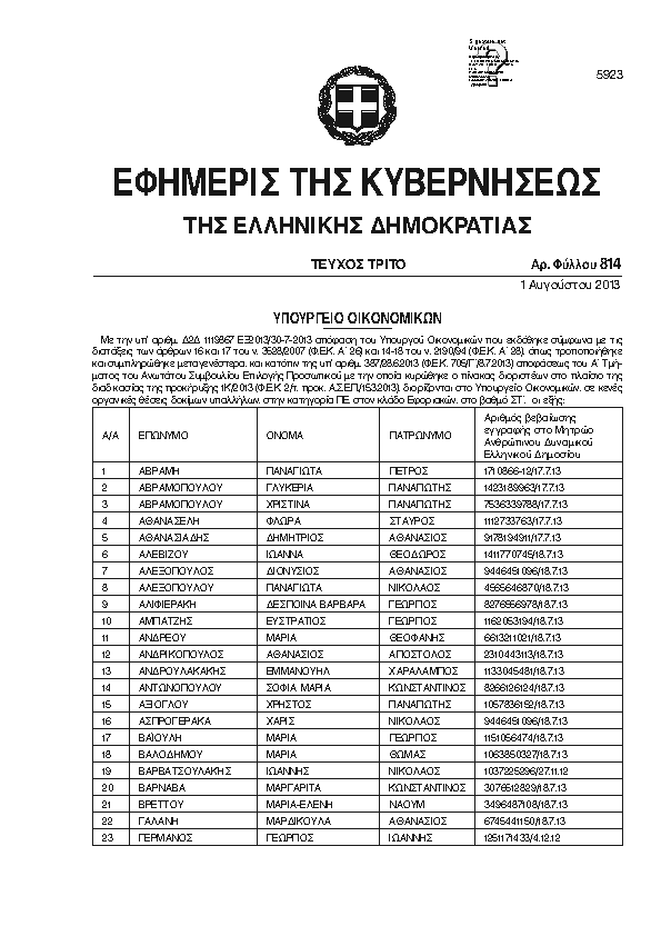 Αναζήτηση στα ΦΕΚ για:  Βαρναβα