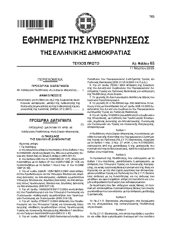 ΜΕΤΡΑ ΓΙΑ ΤΗΝ ΚΑΤΑΠΟΛΕΜΗΣΗ ΤΗΣ ΑΦΡΙΚΑΝΙΚΗΣ ΠΑΝΩΛΟΥΣ ΤΩΝ ΧΟΙΡΩΝ ΚΑΙ ΤΡΟΠ/ΣΗ ΤΟΥ ΠΑΡΑΡΤΗΜΑΤΟΣ Ι ΤΟΥ Π.Δ. 138/1995 Α88 ΣΕ ΣΥΜΜΟΡΦΩΣΗ ΠΡΟΣ ΤΗΝ ΟΔΗΓΙΑ 2002/60/ΕΚ ΤΟΥ ΣΥΜΒΟΥΛΙΟΥ