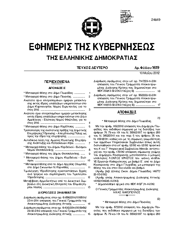 Αναζήτηση στα ΦΕΚ για:  Δημοτική Κοινότητα