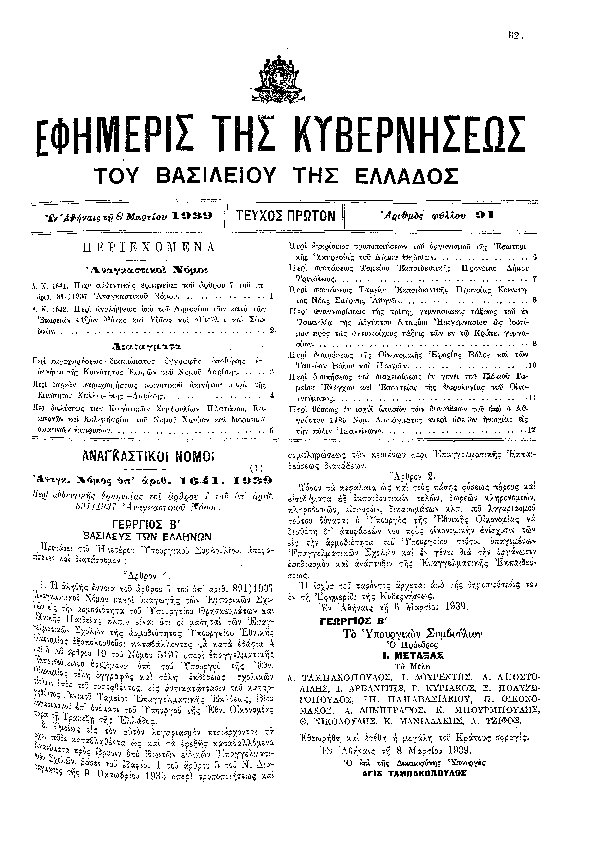 9. ΦΕΚ 91/A, 1939 http://www.et.gr/