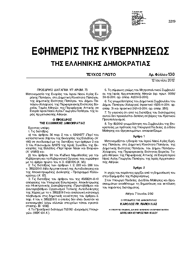 ΜΕΤΟΝΟΜΑΣΙΑ ΤΗΣ ΕΝΟΡΙΑΣ ΤΟΥ ΙΕΡΟΥ ΝΑΟΥ ΑΓΙΑΣ ΕΙΡΗΝΗΣ ΠΑΠΑΓΟΥ, ΣΤΗ ΔΗΜΟΤΙΚΗ ΚΟΙΝΟΤΗΤΑ ΠΑΠΑΓΟΥ, ΤΗΣ ΔΗΜΟΤΙΚΗΣ ΕΝΟΤΗΤΑΣ ΠΑΠΑΓΟΥ, ΤΟΥ ΔΗΜΟΥ ΠΑΠΑΓΟΥ- ΧΟΛΑΡΓΟΥ, ΤΗΣ ΠΕΡΙΦΕΡΕΙΑΚΗΣ ΕΝΟΤΗΤΑΣ ΒΟΡΕΙΟΥ ΤΟΜΕΑ ΑΘΗΝΩΝ, ΤΗΣ ΠΕΡΙΦΕΡΕΙΑΣ ΑΤΤΙΚΗΣ, ΣΕ ΕΝΟΡΙΑ ΙΕΡΟΥ ΝΑΟΥ ΑΓΙΟΥ ΓΕΩΡΓΙΟΥ ΠΑΠΑΓΟΥ, ΤΗΣ ΙΕΡΑΣ ΑΡΧΙΕΠΙΣΚΟΠΗΣ ΑΘΗΝΩΝ.