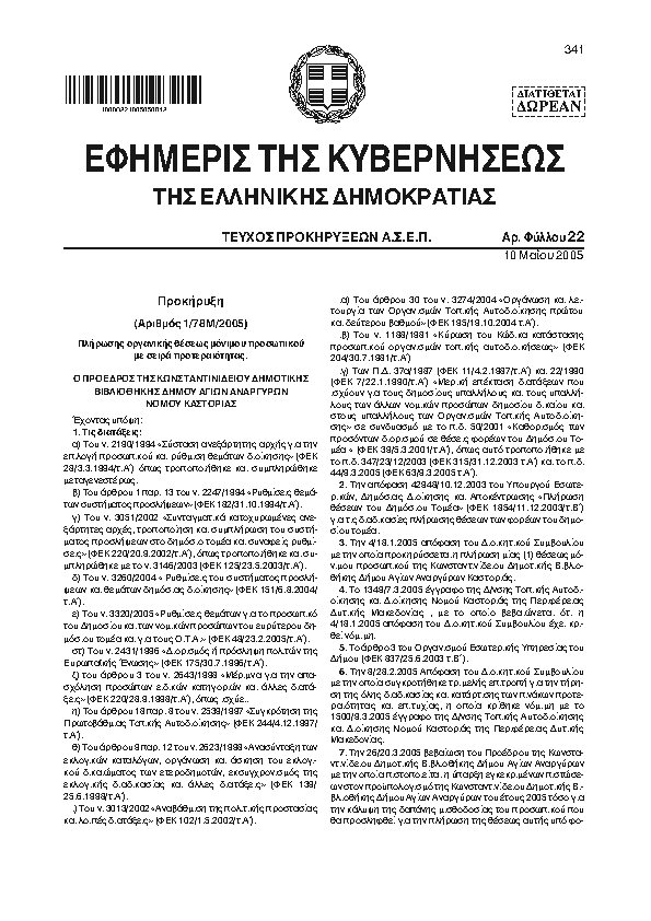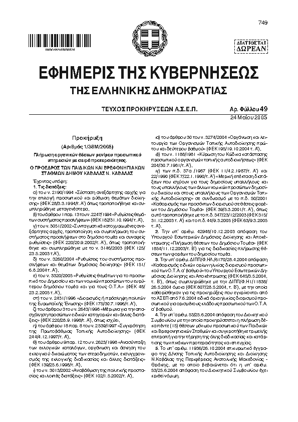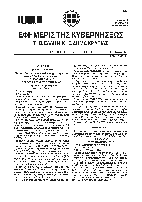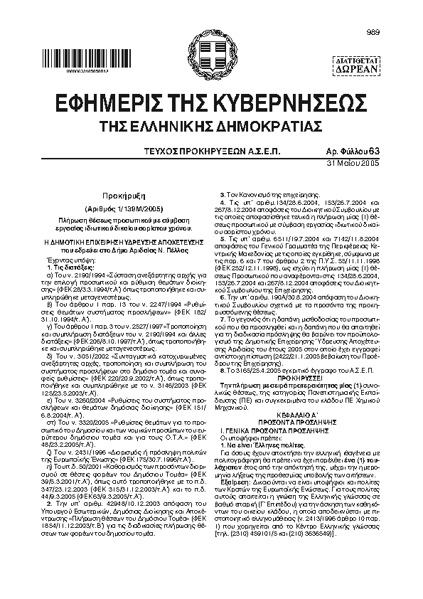 Αναζήτηση στα ΦΕΚ για:  Δημοτική Κοινότητα