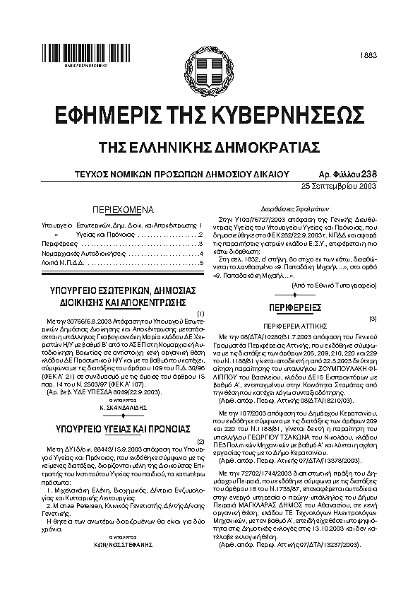 Αναζήτηση στα ΦΕΚ για:  Δημοτική Κοινότητα