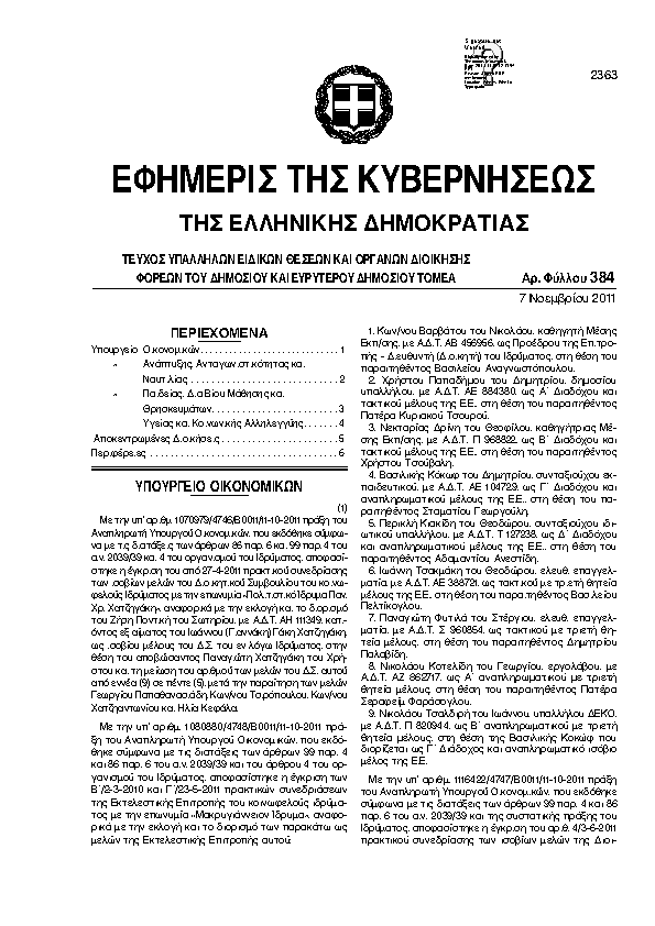 Αναζήτηση στα ΦΕΚ για:  Δημοτική Κοινότητα