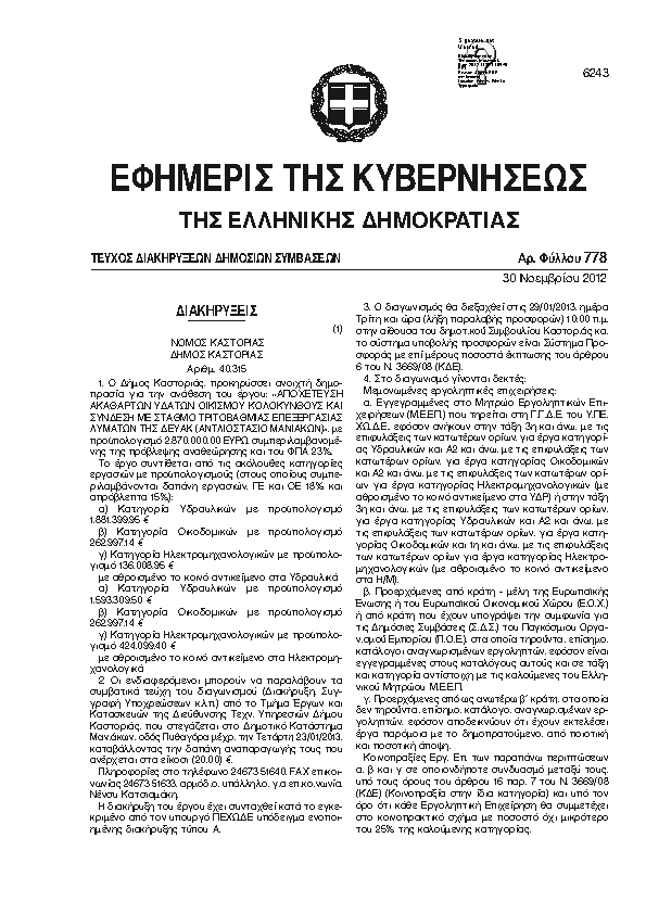 Αναζήτηση στα ΦΕΚ για:  Δημοτική Κοινότητα