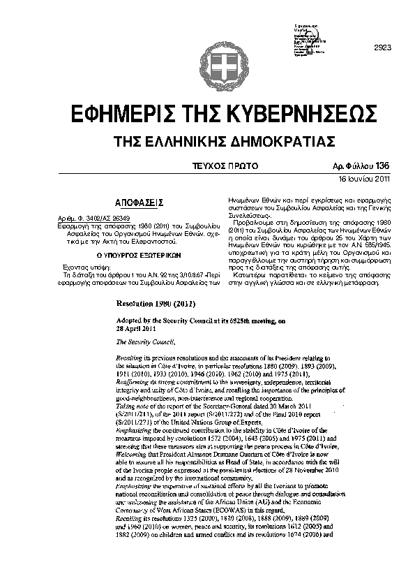 ΚΥΡΩΣΗ ΤΟΥ ΜΝΗΜΟΝΙΟΥ ΣΥΝΕΡΓΑΣΙΑΣ (M.O.U.) ΜΕΤΑΞΥ ΤΟΥ ΥΠΟΥΡΓΕΙΟΥ ΠΟΛΙΤΙΣΜΟΥ ΤΗΣ ΕΛΛΗΝΙΚΗΣ ΔΗΜΟΚΡΑΤΙΑΣ ΚΑΙ ΤΟΥ ΚΡΑΤΙΚΟΥ ΦΟΡΕΑ ΔΙΑΧΕΙΡΙΣΗΣ ΤΗΣ ΠΟΛΙΤΙΣΤΙΚΗΣ ΚΛΗΡΟΝΟΜΙΑΣ ΤΗΣ ΛΑΙΚΗΣ ΔΗΜΟΚΡΑΤΙΑΣ ΤΗΣ ΚΙΝΑΣ ΣΧΕΤΙΚΑ ΜΕ ΣΥΝΕΡΓΑΣΙΑ ΓΙΑ ΤΗΝ ΠΡΟΛΗΨΗ ΤΗΣ ΚΛΟΠΗΣ, ΤΗΣ ΠΑΡΑΝΟΜΗΣ ΑΝΑΣΚΑΦΗΣ, ΕΙΣΑΓΩΓΗΣ ΚΑΙ ΕΞΑΓΩΓΗΣ ΠΟΛΙΤΙΣΤΙΚΩΝ ΑΓΑΘΩΝ.
