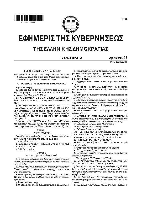 ΠΡΟΣΑΡΜΟΓΗ ΣΤΙΣ ΔΙΑΤΑΞΕΙΣ ΤΗΣ ΟΔΗΓΙΑΣ 94/56/ΕΚ ΤΟΥ ΕΥΡΩΠΑΪΚΟΥ ΣΥΜΒΟΥΛΙΟΥ ΓΙΑ ΤΗ ΘΕΣΠΙΣΗ ΒΑΣΙΚΩΝ ΑΡΧΩΝ ΠΟΥ ΔΙΕΠΟΥΝ ΤΙΣ ΕΡΕΥΝΕΣ ΑΤΥΧΗΜΑΤΩΝ ΚΑΙ ΣΥΜΒΑΝΤΩΝ ΠΟΛΙΤΙΚΗΣ ΑΕΡΟΠΟΡΙΑΣ - ΕΝΙΣΧΥΣΗ ΤΗΣ ΚΡΑΤΙΚΗΣ ΕΠΟΠΤΕΙΑΣ ΕΠΙ ΤΩΝ ΠΡΟΤΥΠΩΝ ΑΣΦΑΛΕΙΑΣ ΠΤΗΣΕΩΝ, ΡΥΘΜΙΣΗ ΣΥΝΑΦΩΝ ΟΡΓΑΝΩΤΙΚΩΝ ΘΕΜΑΤΩΝ ΤΗΣ ΥΠΗΡΕΣΙΑΣ ΠΟΛΙΤΙΚΗΣ ΑΕΡΟΠΟΡΙΑΣ (Υ.Π.Α.) ΚΑΙ ΑΛΛΕΣ ΔΙΑΤΑΞΕΙΣ