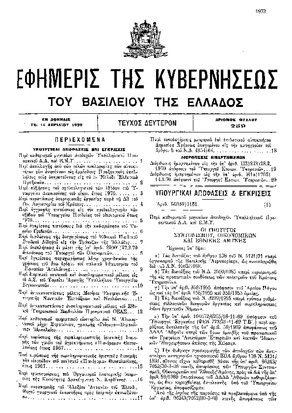 10. ΦΕΚ 259/A, 1969 http://www.et.gr/