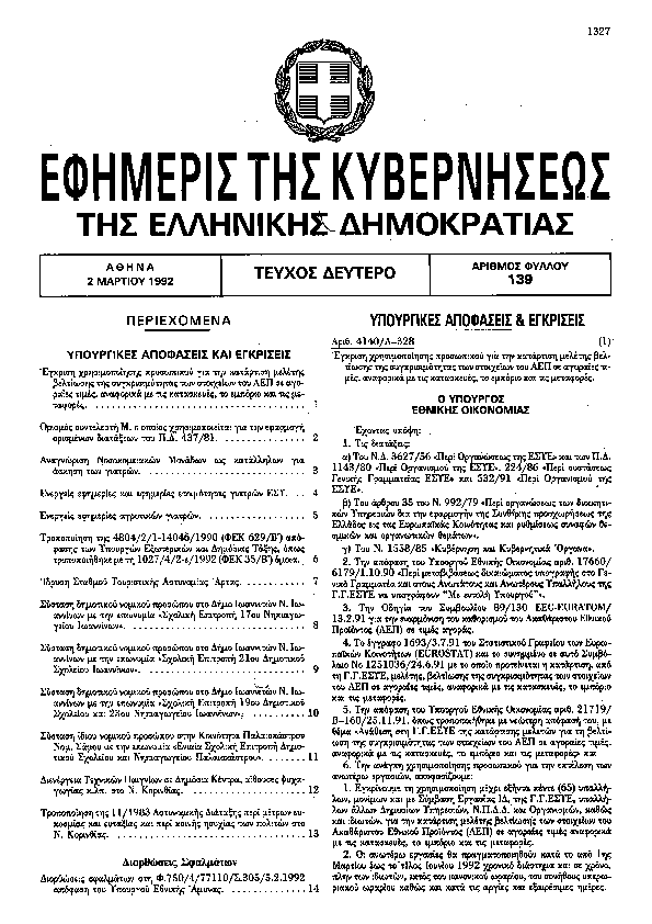 Αναζήτηση στα ΦΕΚ για:  Επιτροπή Αγροτικών Θεμάτων