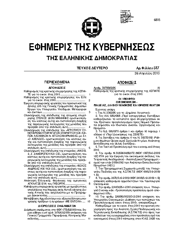 Αναζήτηση στα ΦΕΚ για:  Επιτροπή Ισότητας