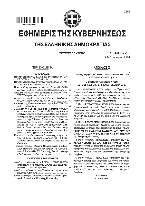 Αναζήτηση στα ΦΕΚ για:  Επιτροπή Ισότητας