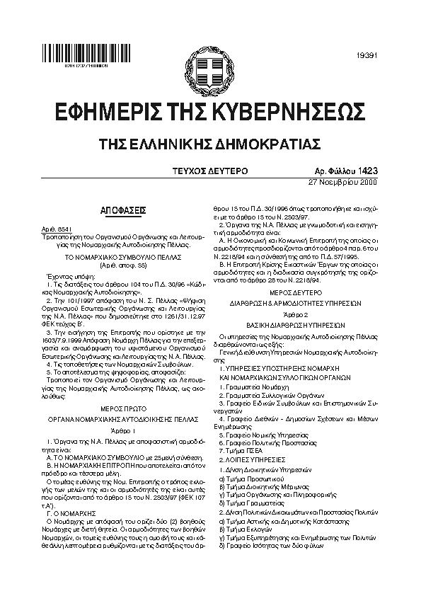 Αναζήτηση στα ΦΕΚ για:  Επιτροπή Κυκλοφοριακών Ρυθμίσεων