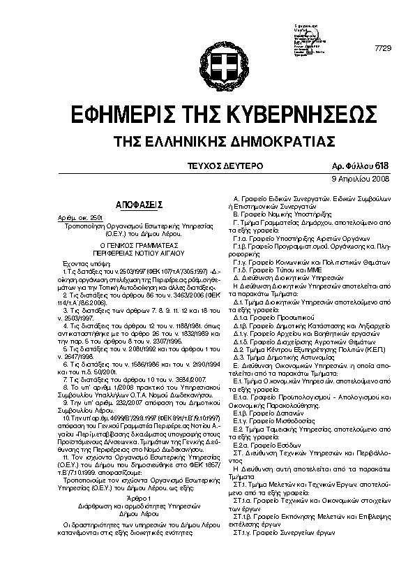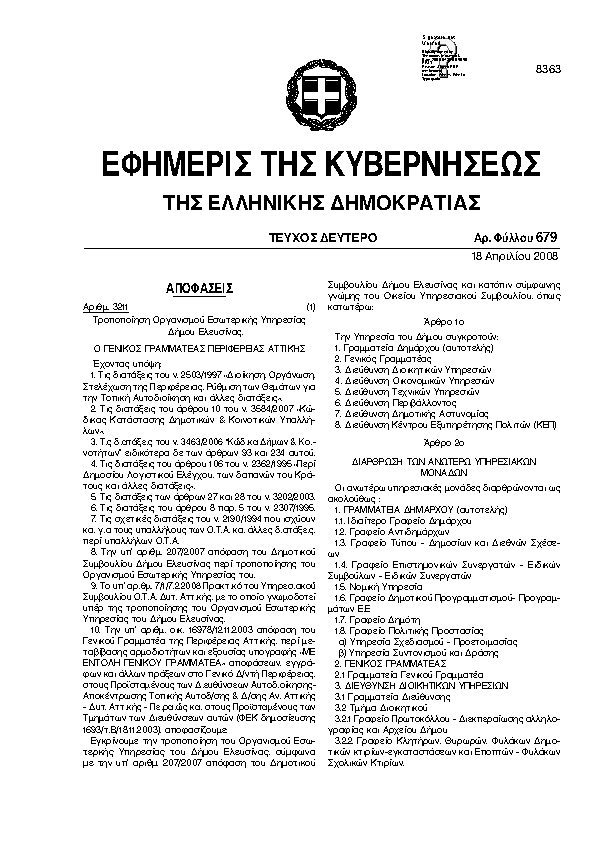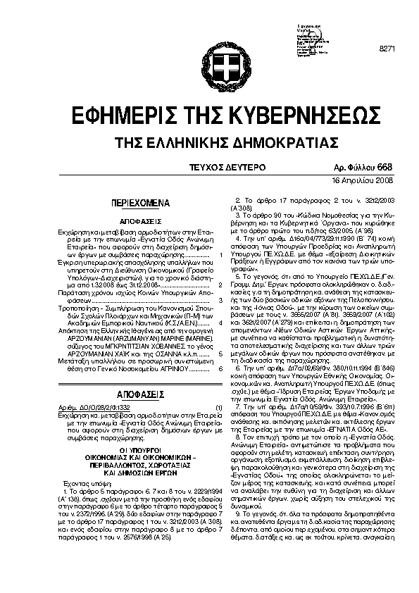 Αναζήτηση στα ΦΕΚ για:  Επιτροπή Κυκλοφοριακών Ρυθμίσεων