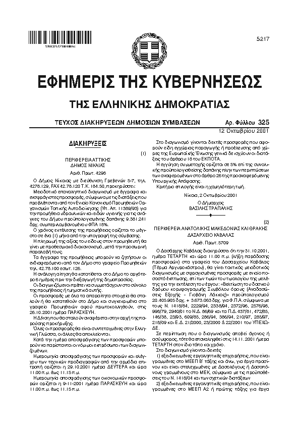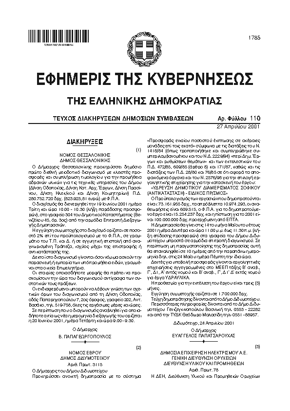 4. ΦΕΚ 267/A, 2001 http://www.et.gr/