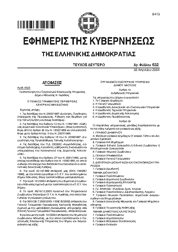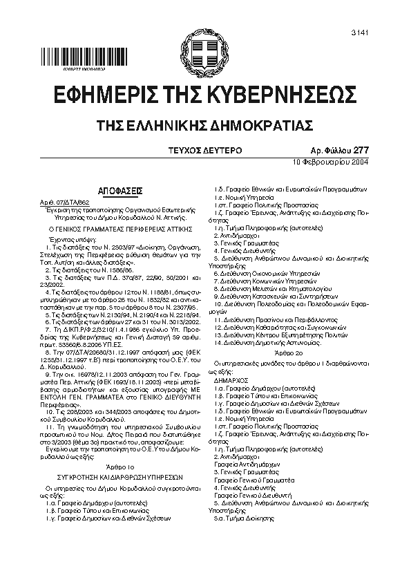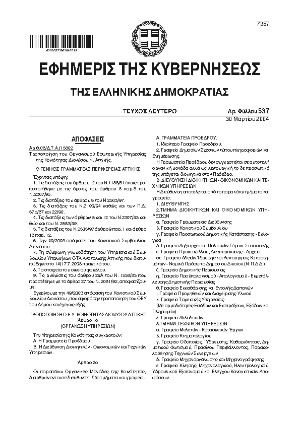 Αναζήτηση στα ΦΕΚ για:  Επιτροπή Κυκλοφοριακών Ρυθμίσεων