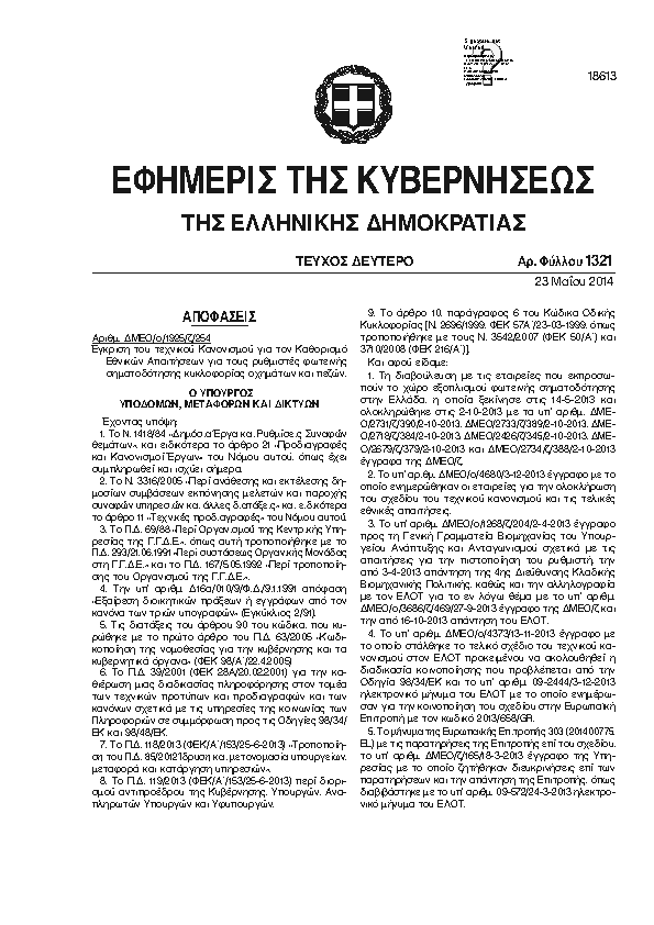 Αναζήτηση στα ΦΕΚ για:  Επιτροπή Κυκλοφοριακών