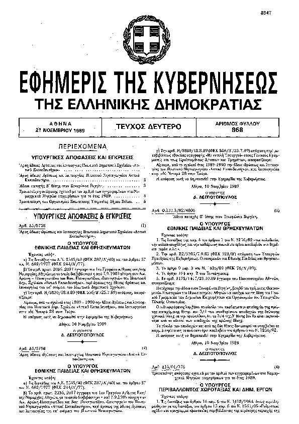 9. ΦΕΚ 69/A, 1989 http://www.et.gr/