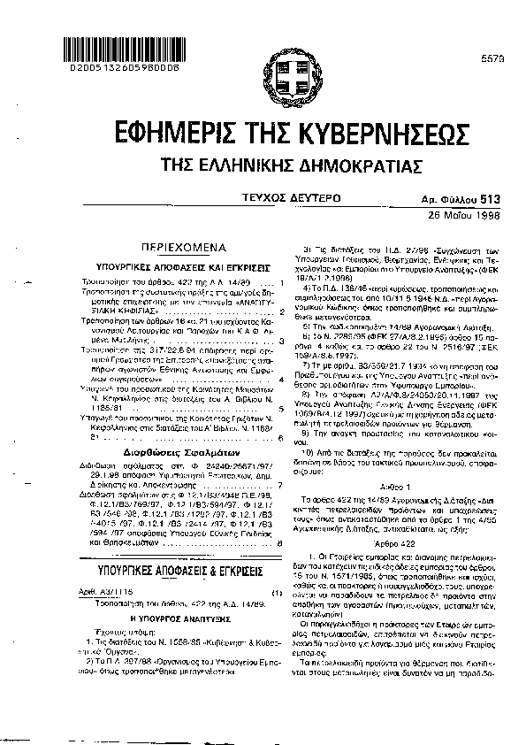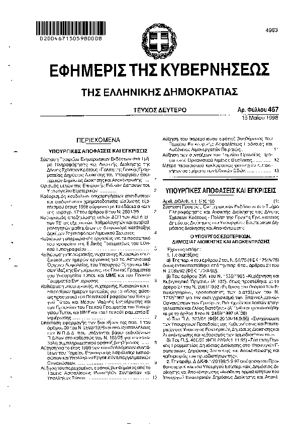 Αναζήτηση στα ΦΕΚ για:  Επιτροπή Κυκλοφοριακών