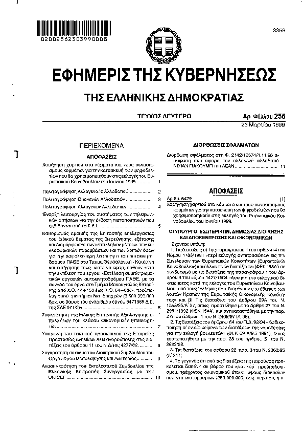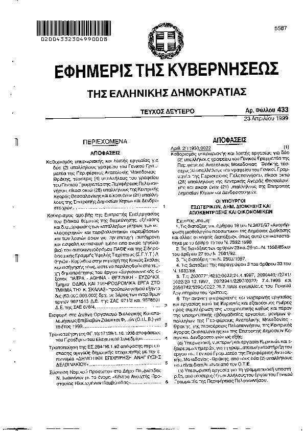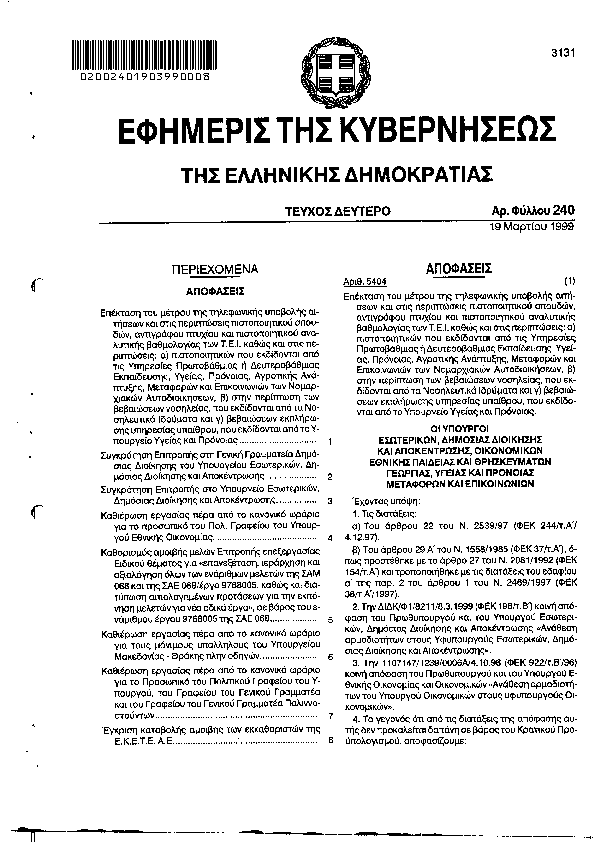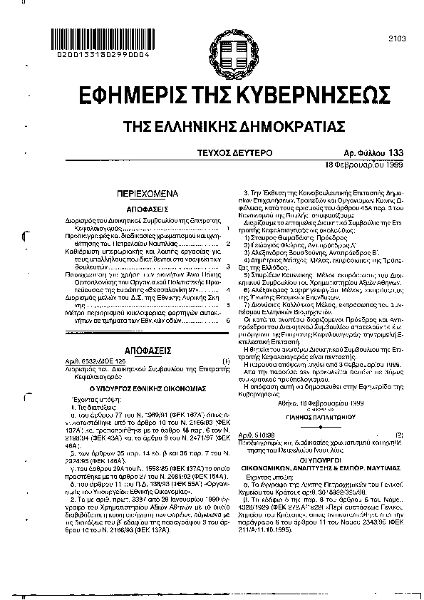Αναζήτηση στα ΦΕΚ για:  Επιτροπή Κυκλοφοριακών