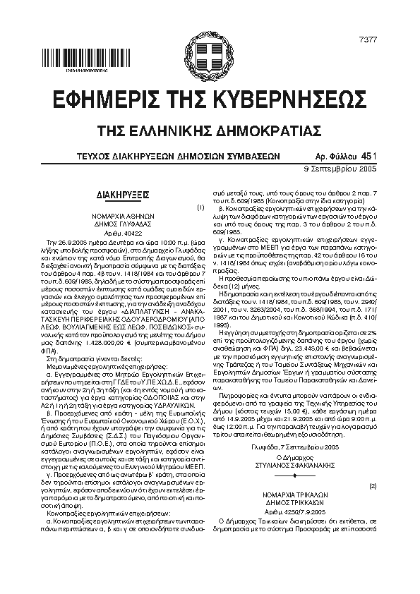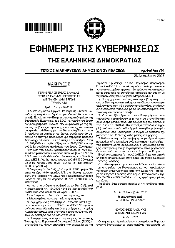 Αναζήτηση στα ΦΕΚ για:  Επιτροπή Κυκλοφοριακών