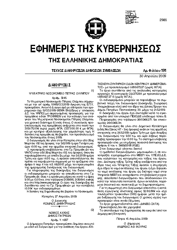 Αναζήτηση στα ΦΕΚ για:  Επιτροπή Κυκλοφοριακών