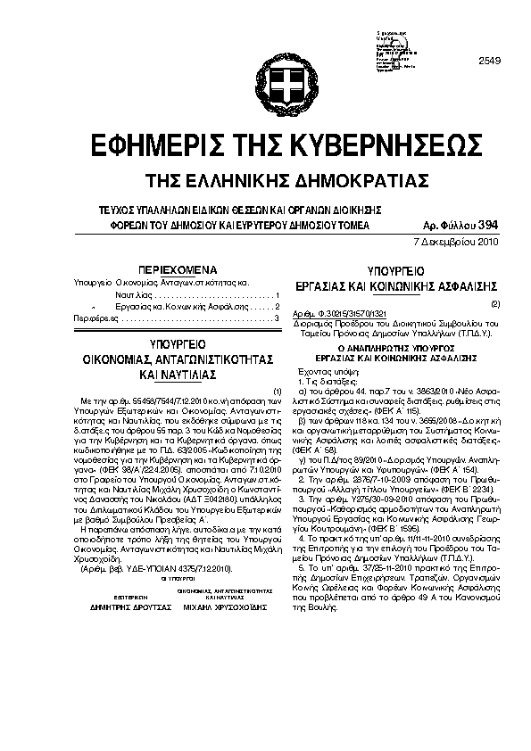 Αναζήτηση στα ΦΕΚ για:  Επιτροπή Κυκλοφοριακών