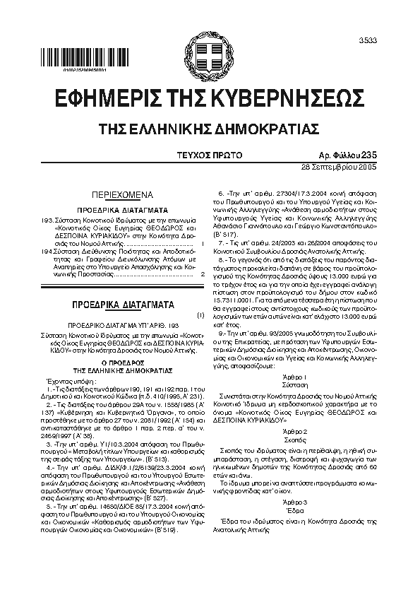 10. ΦΕΚ 235/A, 2005 http://www.et.gr/